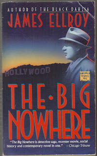 Oh, yes, this is a James Ellroy novel. This is The Big Nowhere. I can't imagine anyone familiar with contemporary crime literature not knowing his name, for James Ellroy single-handedly resuscitated the mystery-noir novel in the late-80s (and continues to astonish with his work today). With his penchant for hipster-cop slang, clipped, vivid prose, extreme violence and gore, complicated and lengthy novels, and dozens upon dozens of characters, Ellroy upped the ante for what mystery novels could do and be. This is not escapist fiction--you will probably never encounter a world as dark and unrelenting, or as morally repugnant, as the one depicted in his so-called L. A. Quartet, of which The Big Nowhere is second.